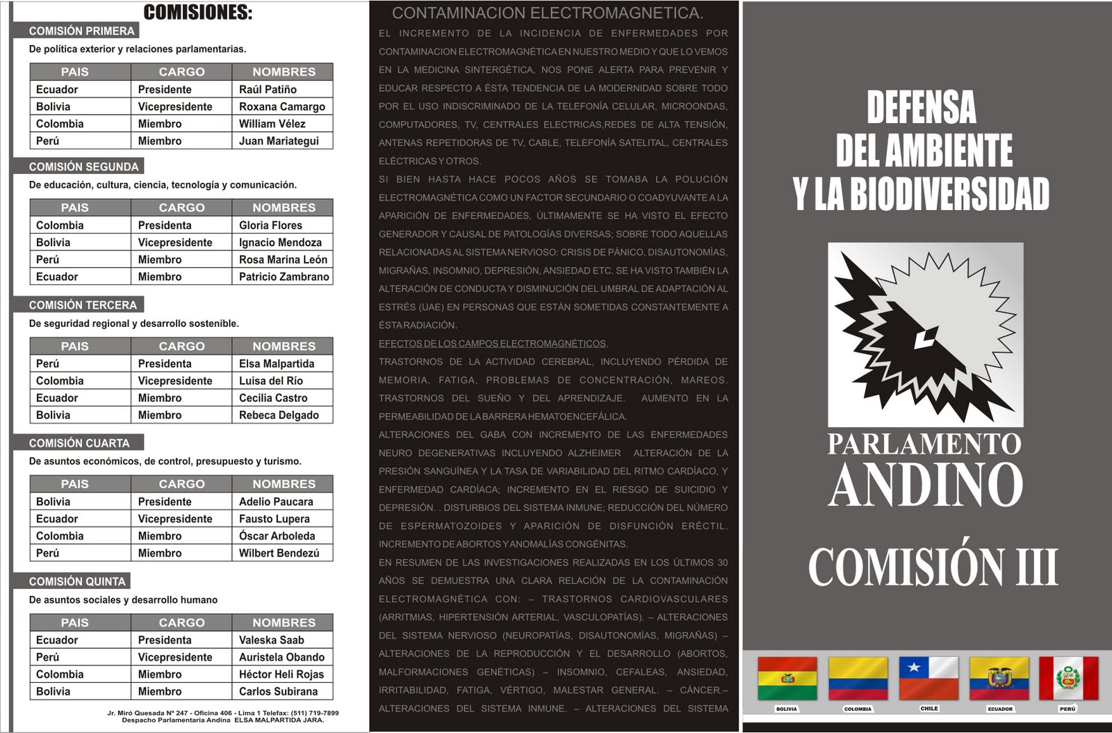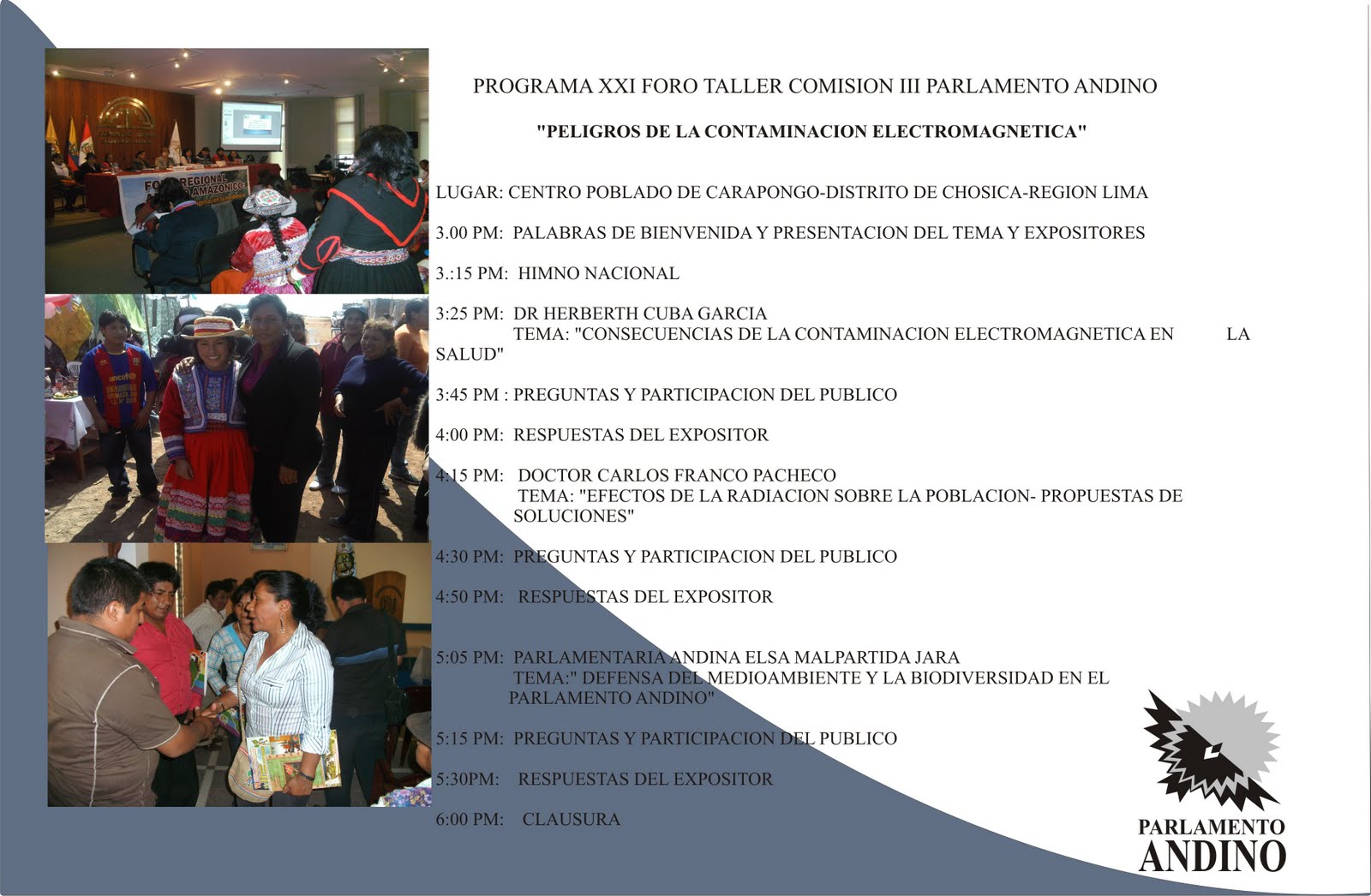 LA PRESIDENTA DE LACOMISION III - PARLAMENTO ANDINO ORGANIZA EL XXI FORO TALLER CONSERVACION DEL AMBIENTE Y BIODIVERSIDAD "PELIGROS DE LA CONTAMINACION ELECTROMAGNETICA".