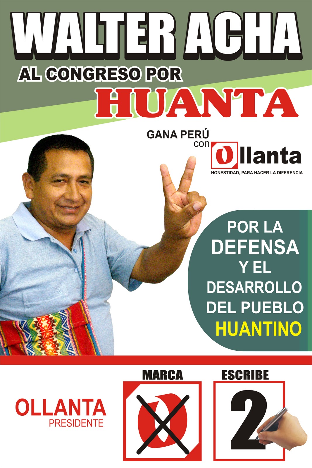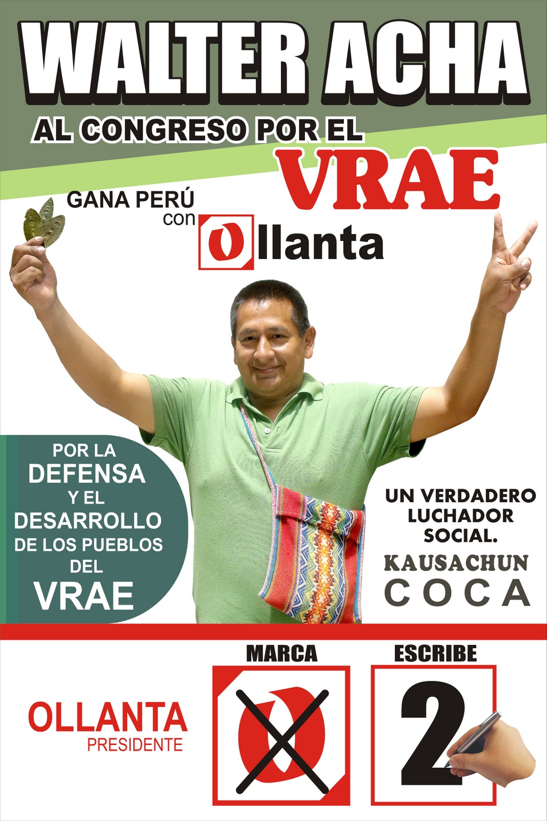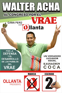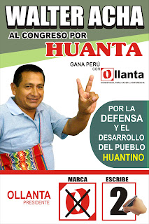 Un lider campesino Cocalero al Congreso escribe el numero 2 por Ayacucho